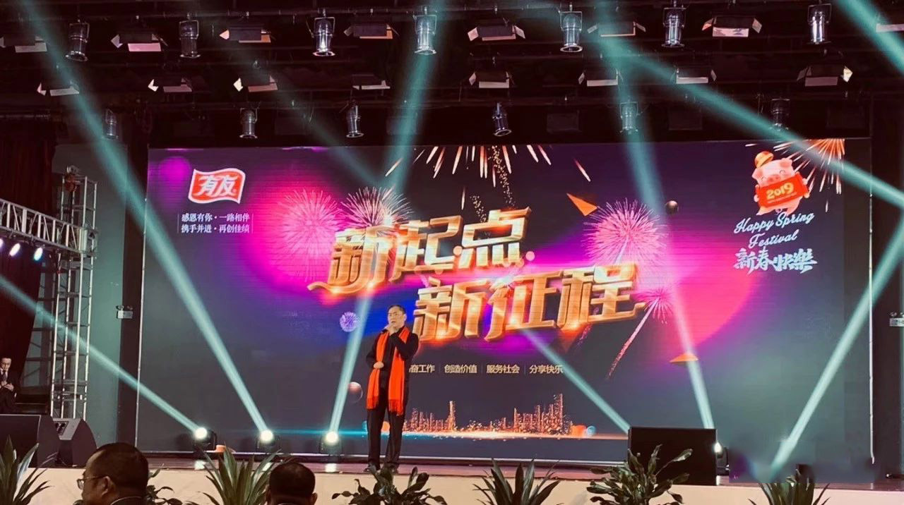 1月26日至2月2日,有友食品2019年新春团拜会相继在四川公司、制造公司、股份公司、销售公司举行。董事长鹿有忠先生向全体员工致以新春祝福,感谢大家在过去一年中的辛勤付出。