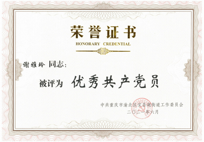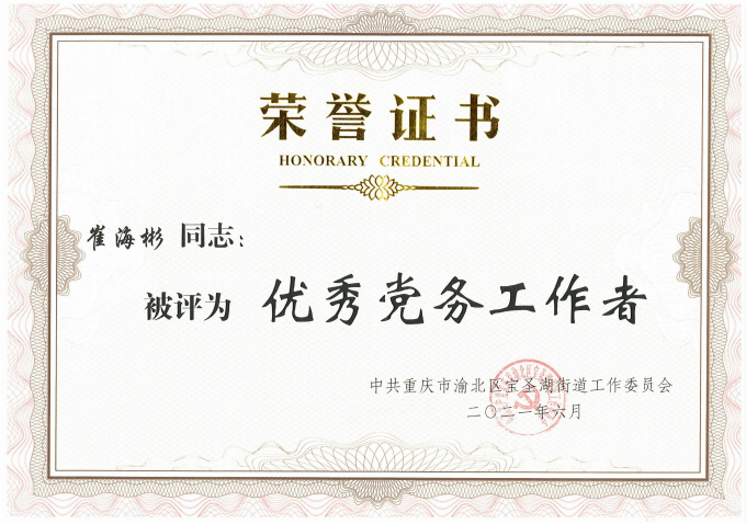 近日,1xBET(中国)官方网站党支部荣获渝北区宝圣湖街道“先进基层党组织”荣誉称号,支部谢雅玲同志获评“优秀共产党员”,崔海彬同志获评“优秀党务工作者”。